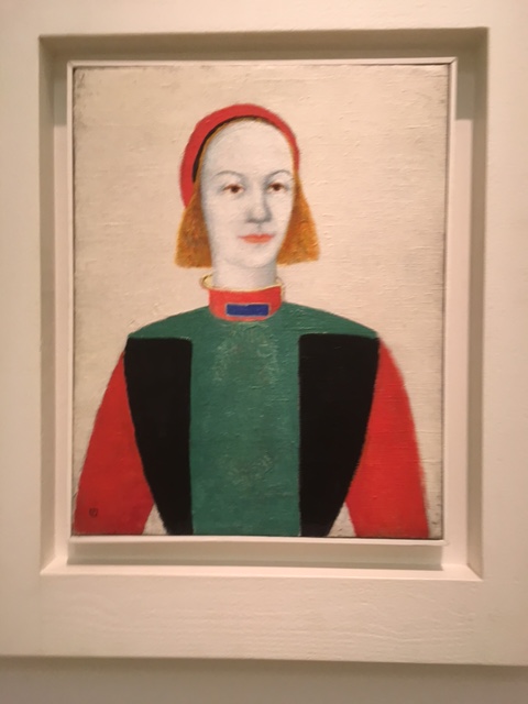 Miten nykyvenäläiset sitten suhtautuvat Malevichiin, tuntevatko he ylpeyttä tämän taiteesta? Vierailin vuonna 2018 Pietarissa Eremitaasin modernin taiteen osastolla. Näyttely oli kovin suppea ottaen huomioon, miten runsas aineisto on kyseessä. Esillä oli mm. rekonstruktio Tatlinin nurkkakonstruktiosta ja yksi Malevichin myöhäisteos, miehen muotokuva 1930-luvulta. Suprematismia ei näkynyt. Kovin hiljaistakin museossa oli; paria turistia lukuun ottamatta paikalla ei ollut ketään. Sitten päätin mennä Venäläisen taiteen museoon, jossa oli esillä Kuzma Petrov-Vodkinin retrospektiivi. Museo oli täynnä väkeä. Tämän symbolistis -romanttis- uskonnollisen taiteilijan teokset koskettivat selvästi pietarilaisyleisöä.