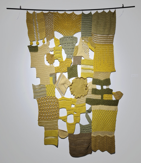 Monenlaiset keholliset ja aistiset kokemukset ovat läsnä kasvitutkimuksessani. Kerääminen oli hikistä puskissa rymyämistä, kasvit pisteleviä ja kutittavia ja voimakkaan hajuisia, värjääminen kylmien ja kuumien liemien ja märkien lankojen lilluttamista, suurikoisen työn virkkaus taas osoitus käsityön fyysisyydestä. Jokaisella aistilla toimiminen oli itselleni ainutlaatuinen kokemus, jossa materiaalin monivaiheinen työstäminen keholla loi syvän suhteen materiaaliin, työprosessiin ja lopputulokseen ajatusmaailman muokkautumista unohtamatta. Materiaalisuuden ja käsillä tekemisen kautta maailman moniaistinen ymmärtäminen on tuntunut mahdolliselta.